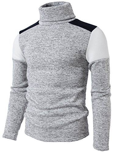 H2H Mens Casual Tight Fit Color Block Designed Turtle-Neck Sweater HeatherGray US L/Asia XL (KMOSWL0175)